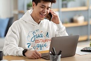 Para começar a personalizar, é só entrar em contato com nossa equipe e enviar a sua estampa. Seu moletom ficará pronto em até 72 horas e será entregue diretamente na sua casa, em qualquer lugar do Brasil.